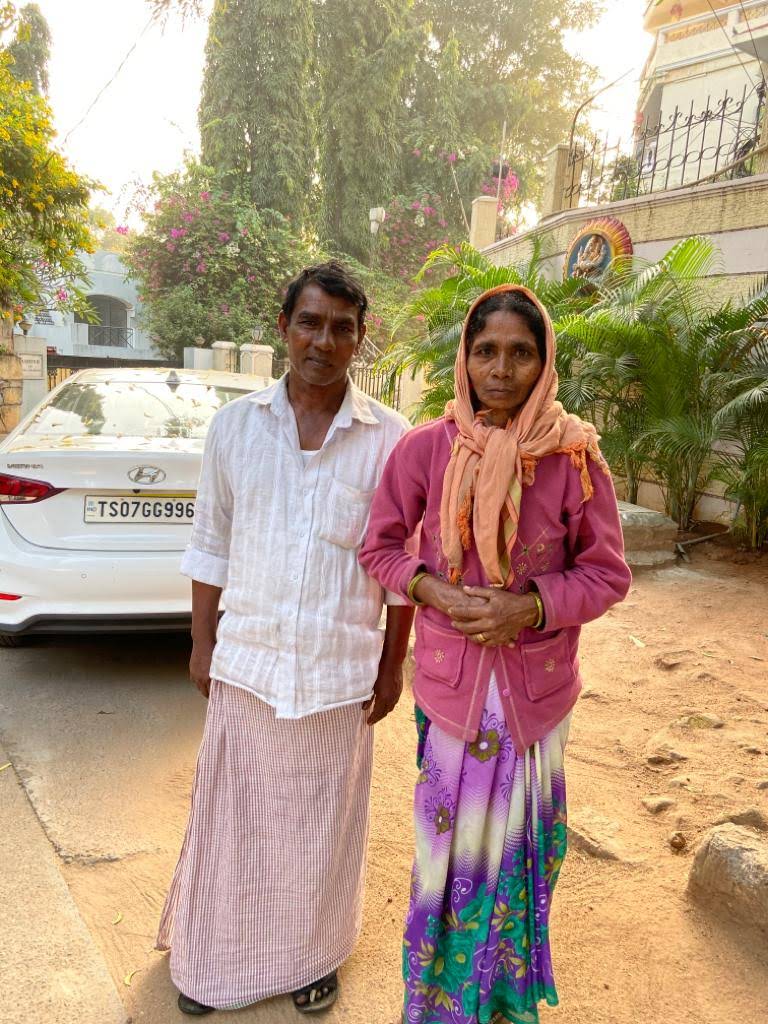 “Namaste Amma!” I heard a woman greet me, and I stopped in my tracks and took off my headphones. It was an elderly woman whom I had never met before. She came up to me smiling and introduced herself, telling me her name was Mariamma (Mary, in Telugu). She then introduced me to her husband, Gabriel! I smiled, nodded, exchanged greetings, and walked on. Then I heard God say, “You were supposed to pray for them!” Realizing that was the first lucid thought I had had that morning, I raced back, only to find that Mariamma and Gabriel had gone back inside the building where they worked. I found a little girl outside (their granddaughter Meghmala), and asked her to call Mariamma back. She did, and Gabriel came along too.