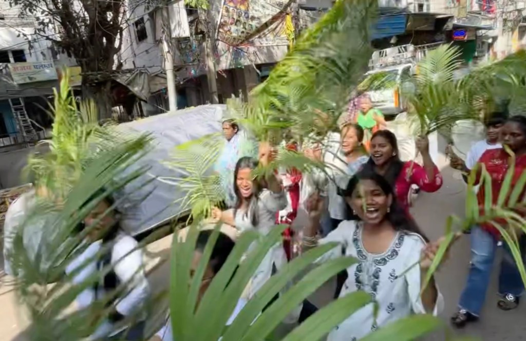 37 When he came near the place where the road goes down the Mount of Olives, the whole crowd of disciples began joyfully to praise God in loud voices for all the miracles they had seen: